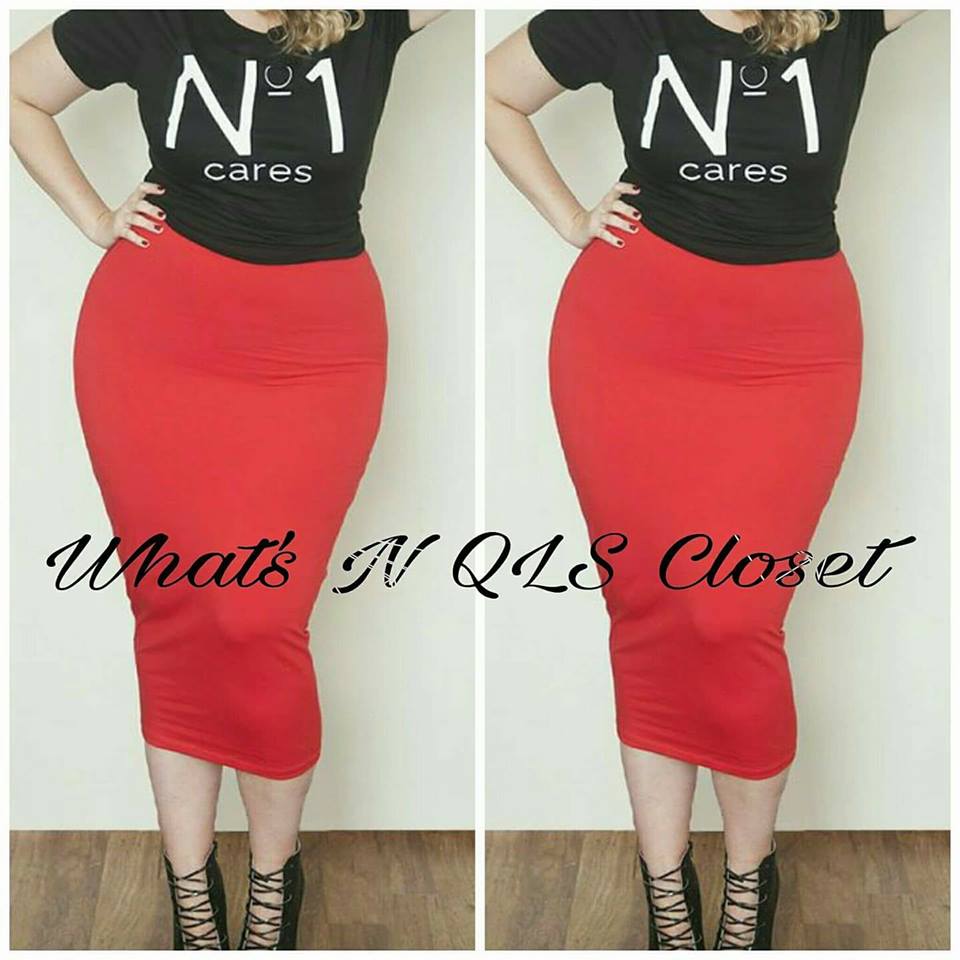 Plus Size Red Midi Skirt
